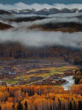 禾木景點(diǎn)位于新疆維吾爾自治區(qū)阿勒泰地區(qū)布爾津縣禾木哈納斯蒙古民族鄉(xiāng)禾木村。禾木村在喀納斯湖東側(cè)約30公里處,是一個由哈薩克人和圖瓦人共同聚居的小村莊。這里的房子全是原木搭成的,充滿原始的味道。禾木村最令人著迷的是萬山紅遍的醉人秋色,炊煙在秋色中冉冉升起,形成一條夢幻般的煙霧帶,勝似仙境。也可在清晨登