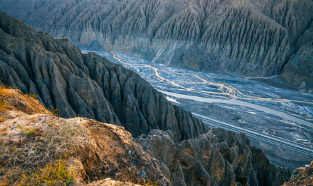 獨(dú)山子大峽谷位于新疆克拉瑪依市獨(dú)山子區(qū)境內(nèi)。1.形成過程:-獨(dú)山子大峽谷由天山雪水將億萬年形成的第四紀(jì)、第三紀(jì)泥沙質(zhì)地層的傾斜平原切割而成,是高山冰雪融水長期沖蝕切割天山北側(cè)坡地而形成的“U”字形斷面峽谷,也是千百年來奎屯河水沖刷的結(jié)果。2.地理數(shù)據(jù):峽谷南北走向,長約20余公里,低谷寬100-40